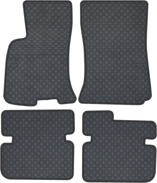 Kolor: Czarny Kolor obszycia: Ekoskóra: czarna + nić czarna Rodzaj obszycia: Nubuk czarny Surowiec: Guma naturalna Dywaniki: Dopasowane pod model Przeznaczenie: Dywaniki podłogowe