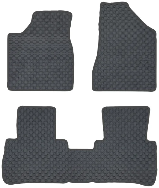 Kolor: Czarny Kolor obszycia: Ekoskóra: czarna + nić czarna Rodzaj obszycia: Nubuk czarny Surowiec: Guma naturalna Dywaniki: Dopasowane pod model Przeznaczenie: Dywaniki podłogowe