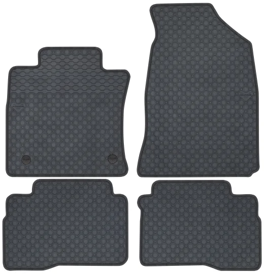 Kolor: Czarny Kolor obszycia: Ekoskóra: czarna + nić czarna Rodzaj obszycia: Nubuk czarny Surowiec: Guma naturalna Dywaniki: Dopasowane pod model Przeznaczenie: Dywaniki podłogowe
