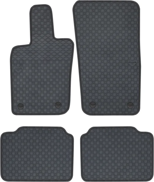 Kolor: Czarny Kolor obszycia: Ekoskóra: czarna + nić czarna Rodzaj obszycia: Nubuk czarny Surowiec: Guma naturalna Dywaniki: Dopasowane pod model Przeznaczenie: Dywaniki podłogowe