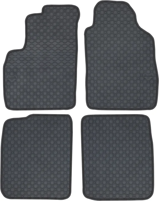 Kolor: Czarny Kolor obszycia: Ekoskóra: czarna + nić czarna Rodzaj obszycia: Nubuk czarny Surowiec: Guma naturalna Dywaniki: Dopasowane pod model Przeznaczenie: Dywaniki podłogowe