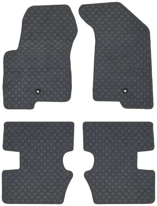 Kolor: Czarny Kolor obszycia: Ekoskóra: czarna + nić czarna Rodzaj obszycia: Nubuk czarny Surowiec: Guma naturalna Dywaniki: Dopasowane pod model Przeznaczenie: Dywaniki podłogowe