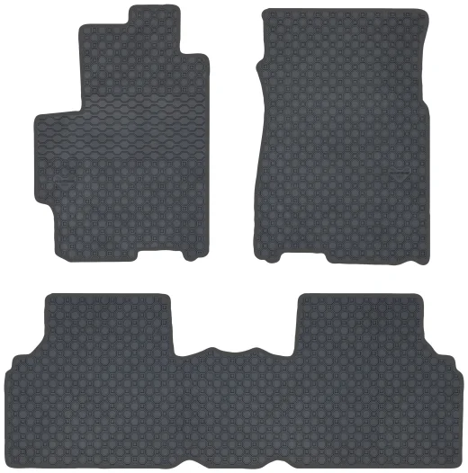 Kolor: Czarny Kolor obszycia: Ekoskóra: czarna + nić czarna Rodzaj obszycia: Nubuk czarny Surowiec: Guma naturalna Dywaniki: Dopasowane pod model Przeznaczenie: Dywaniki podłogowe