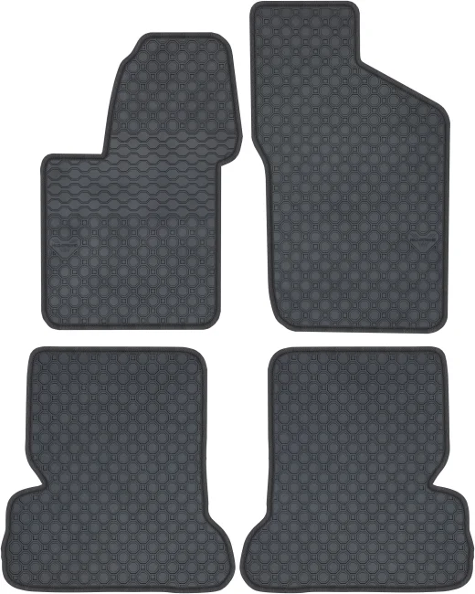 Kolor: Czarny Kolor obszycia: Ekoskóra: czarna + nić czarna Rodzaj obszycia: Nubuk czarny Surowiec: Guma naturalna Dywaniki: Dopasowane pod model Przeznaczenie: Dywaniki podłogowe