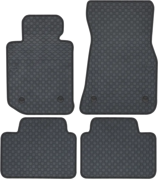 Kolor: Czarny Kolor obszycia: Ekoskóra: czarna + nić czarna Rodzaj obszycia: Nubuk czarny Surowiec: Guma naturalna Dywaniki: Dopasowane pod model Przeznaczenie: Dywaniki podłogowe