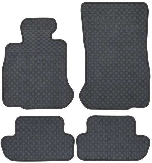 Kolor: Czarny Kolor obszycia: Ekoskóra: czarna + nić czarna Rodzaj obszycia: Nubuk czarny Surowiec: Guma naturalna Dywaniki: Dopasowane pod model Przeznaczenie: Dywaniki podłogowe