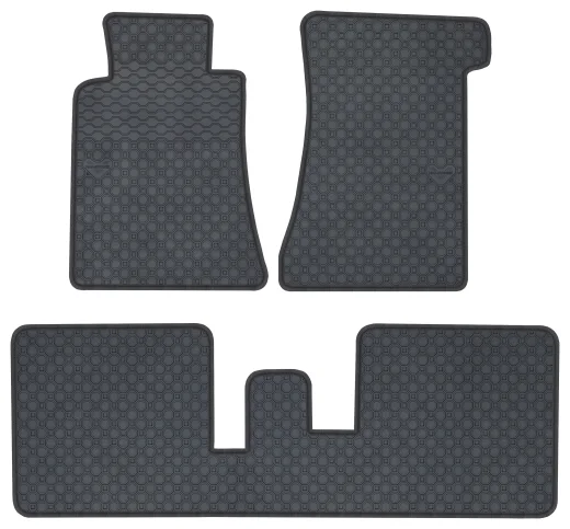Kolor: Czarny Kolor obszycia: Ekoskóra: czarna + nić czarna Rodzaj obszycia: Nubuk czarny Surowiec: Guma naturalna Dywaniki: Dopasowane pod model Przeznaczenie: Dywaniki podłogowe