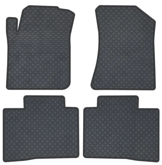 Kolor: Czarny Kolor obszycia: Ekoskóra: czarna + nić czarna Rodzaj obszycia: Nubuk czarny Surowiec: Guma naturalna Dywaniki: Dopasowane pod model Przeznaczenie: Dywaniki podłogowe