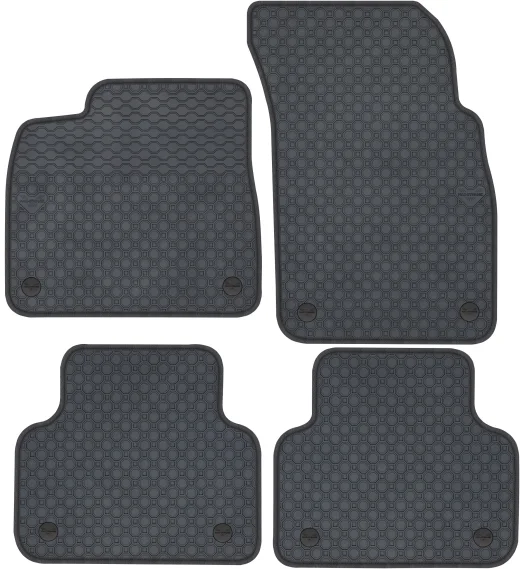 Kolor: Czarny Kolor obszycia: Ekoskóra: czarna + nić czarna Rodzaj obszycia: Nubuk czarny Surowiec: Guma naturalna Dywaniki: Dopasowane pod model Przeznaczenie: Dywaniki podłogowe